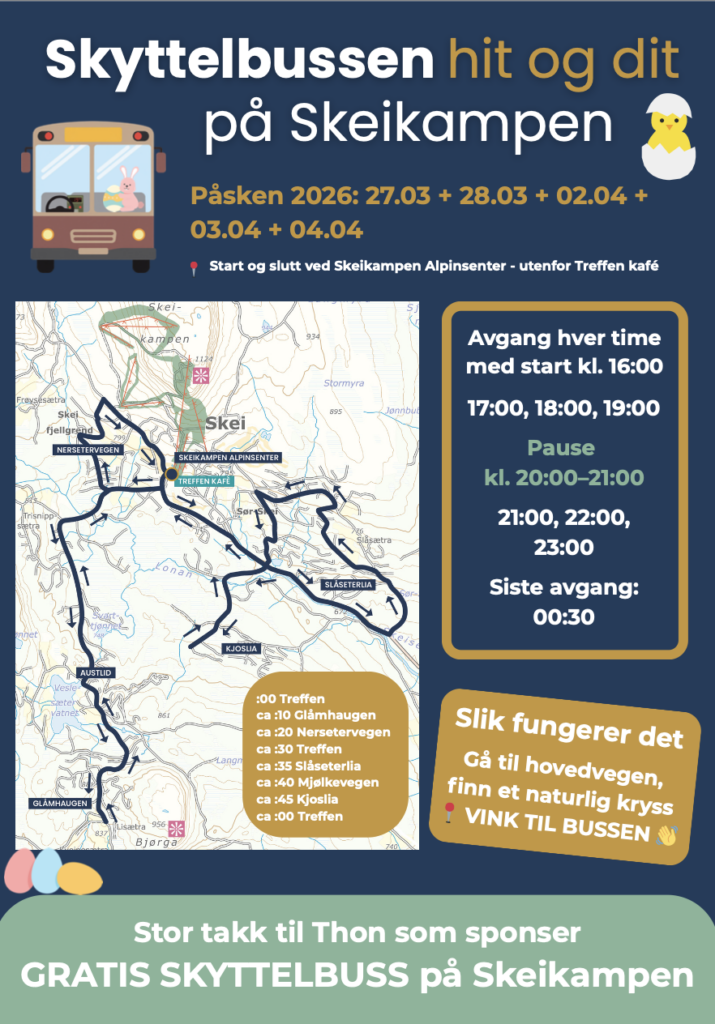- Stor takk til Thon som sponser gratis skyttelbuss på Skeikampen.