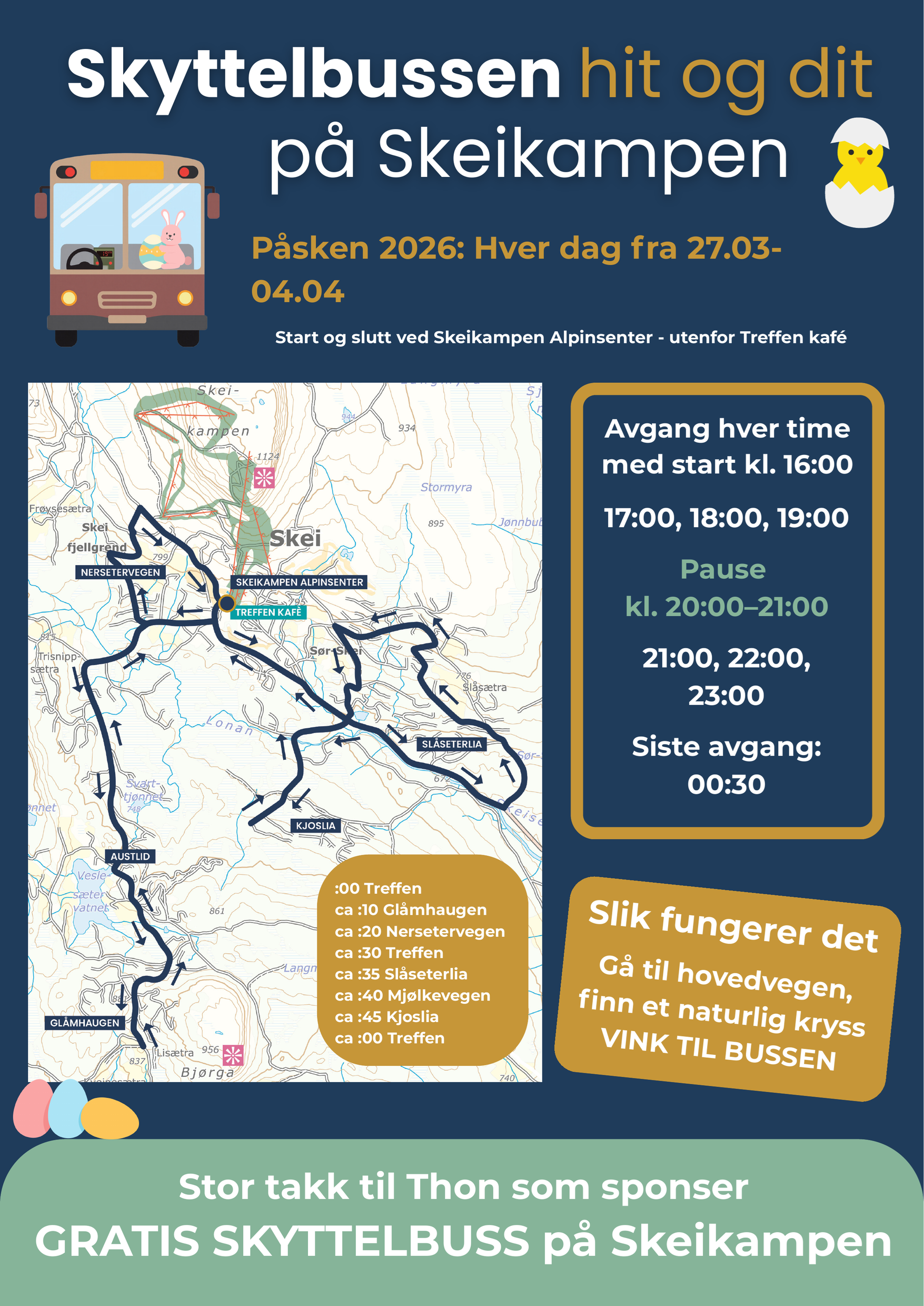 - Stor takk til Thon som sponser gratis skyttelbuss på Skeikampen.