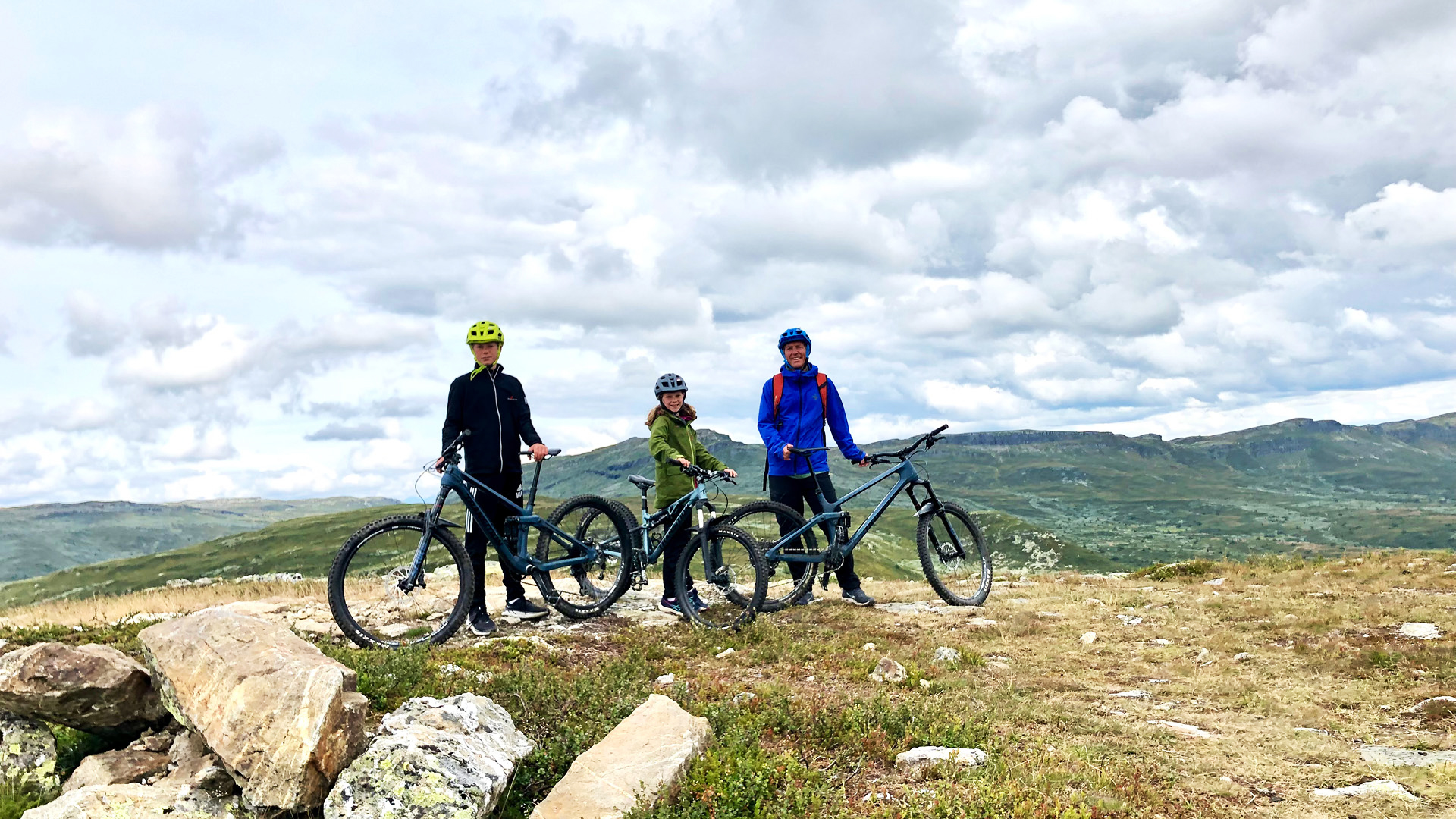 Lørdagen leide vi fulldempede terrengsykler på Skeikampen Ski & Bike, kjøpte heiskort i billettluka og tok syklene med i heisen opp. Vi fikk hjelp til å henge opp og ta ned syklene fra de som jobbet i heisen. Det var første gang vi satt i stolheis uten ski på beina! En morsom og litt rar følelse!