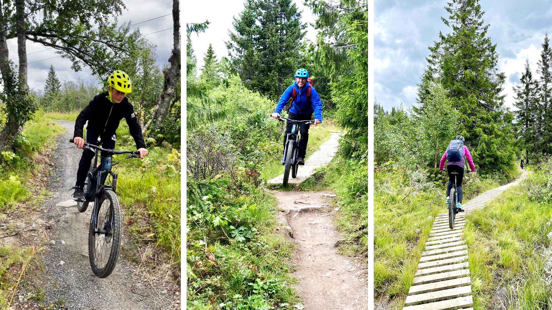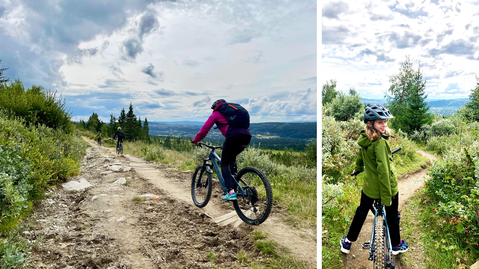 Vi fikk med oss et stisykkel-kart fra sykkelutleien som viste mange ulike muligheter fra toppen. Vi syklet panoramastien S11 bortover fjellet. Det var passe utfordrende terreng for både barn og voksne. Med fulldempede sykler får man god flyt selv om det er mye steiner og røtter på stien. Når vi kom til toppen av Galtenheisen syklet vi stien ned mot Galten restaurant. På høyre side av restauranten var det en traktorvei som ikke var merket opp på sykkelkartet. Den gikk i fine «slalomsvinger» og gav oss en morsom og litt krevende nedoverkjøring. Vi fortsatte nedover de godt tilrettelagte stiene i retning mot stolheisen og kjørte den kule familytrail siste delen av alpinbakken.