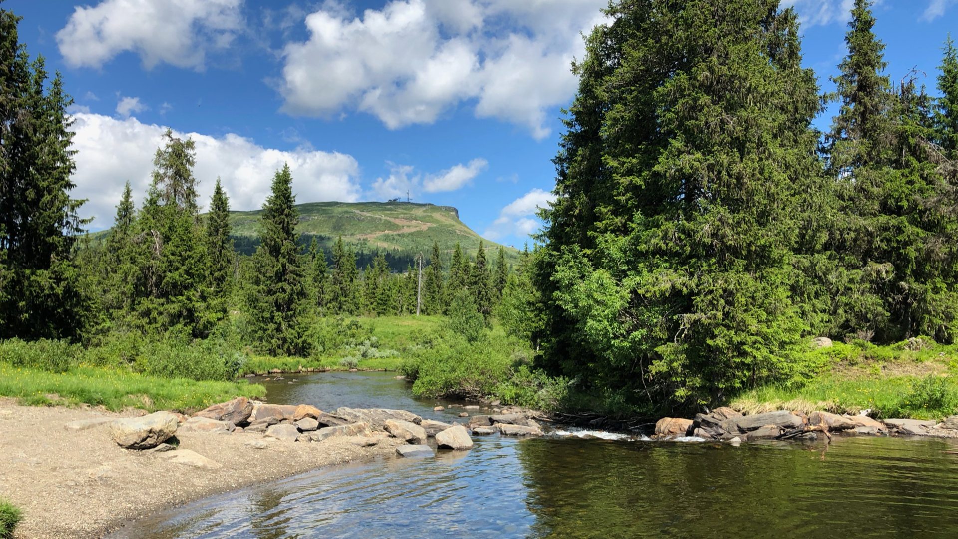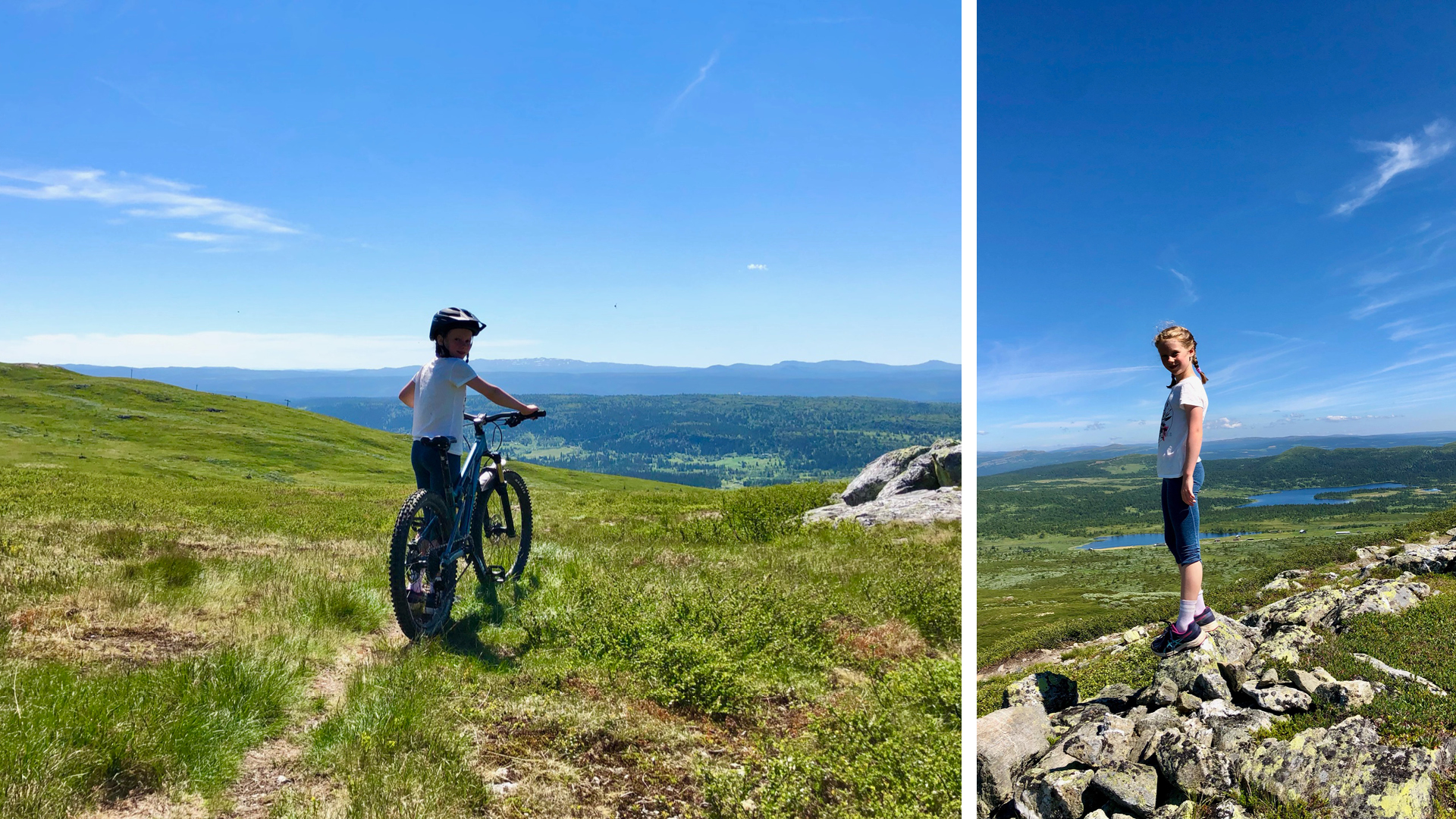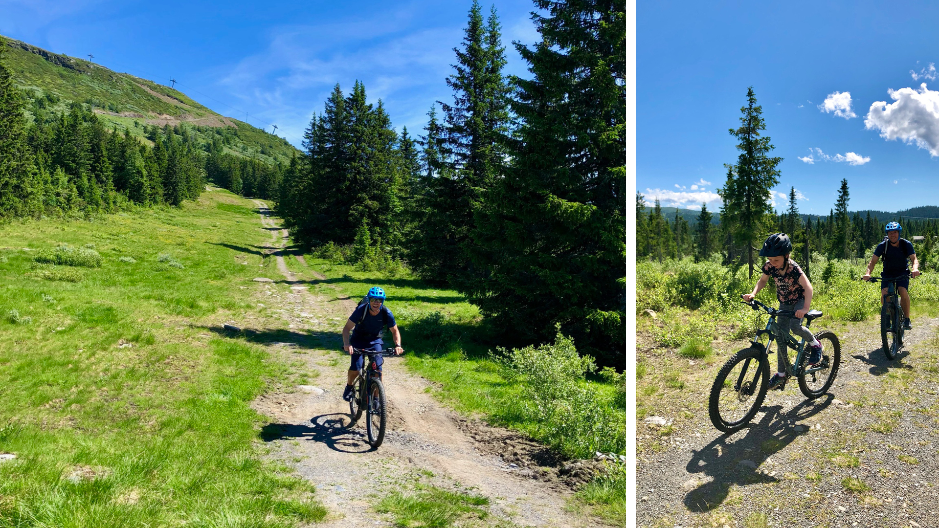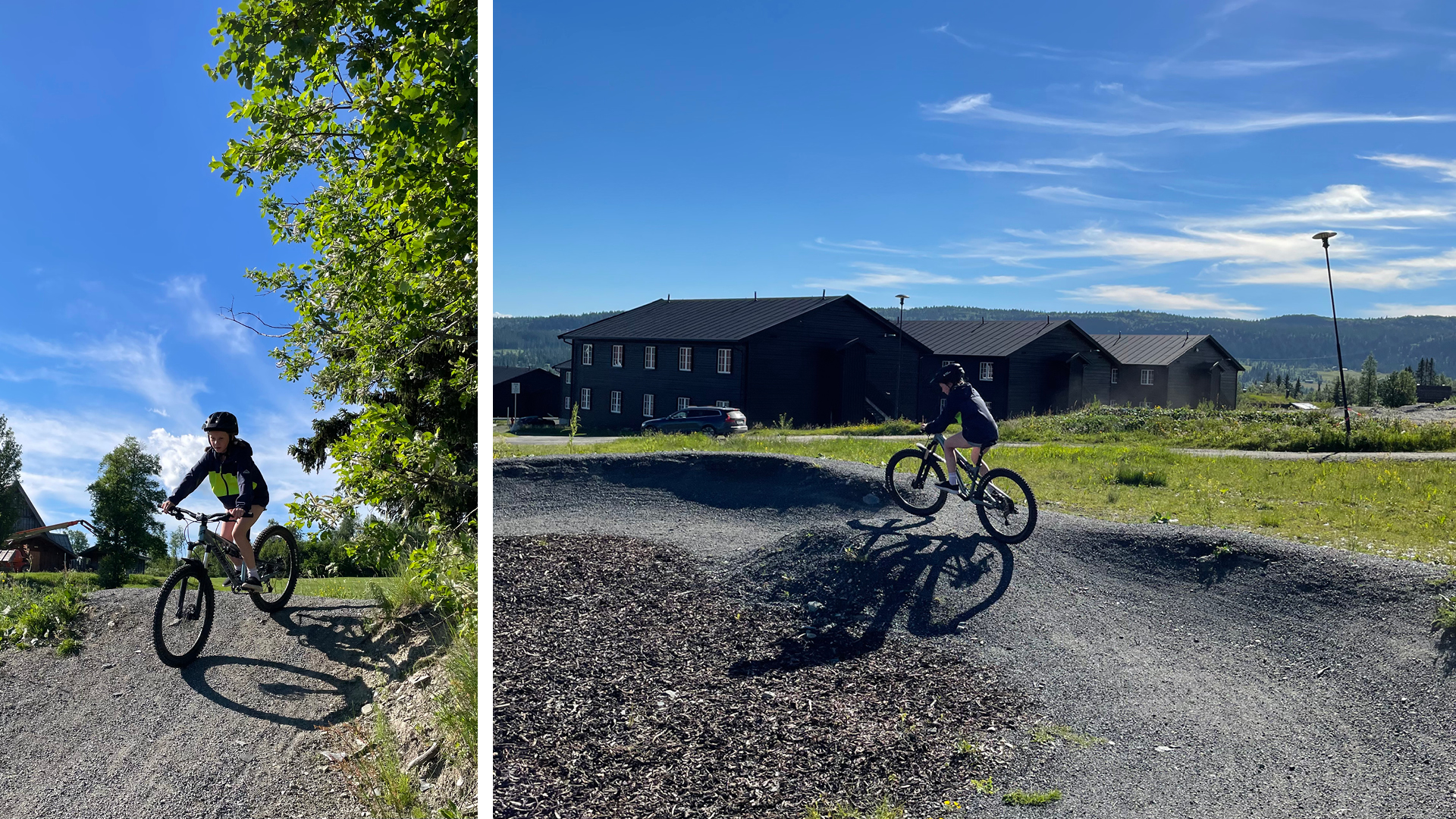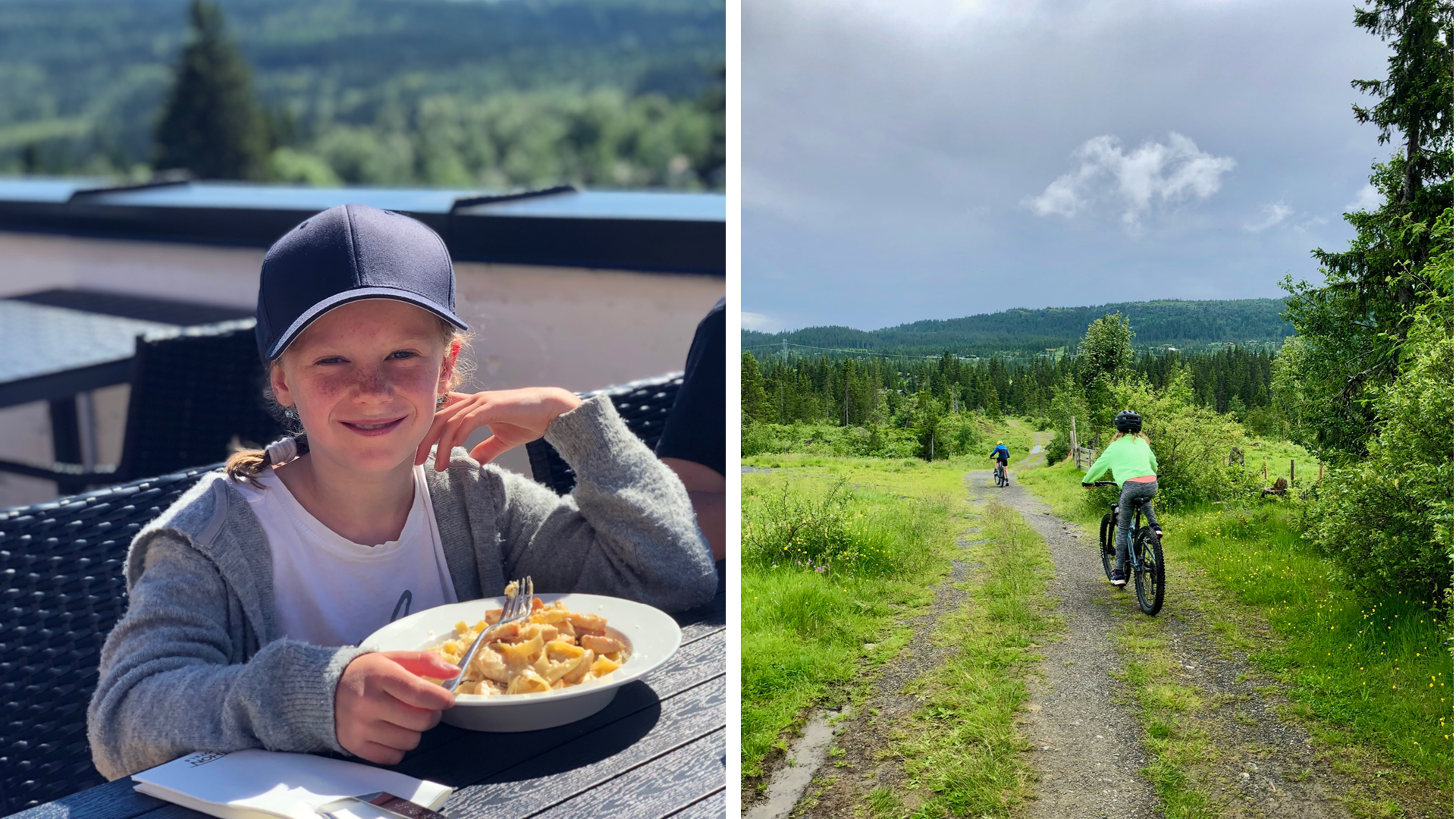I skibakken ved siden av Ola-expressen er det laget en familytrail med morsomme svinger og hopp som vi prøvde på søndagen. Etterpå testet vi noen av de nærmeste sykkelstiene og endte opp i «Paradis» for å ta et bad i friskt fjellvann. Derfra syklet vi til Thon hotell og spiste en herlig pastalunsj i solen på den hyggelige uteserveringen.