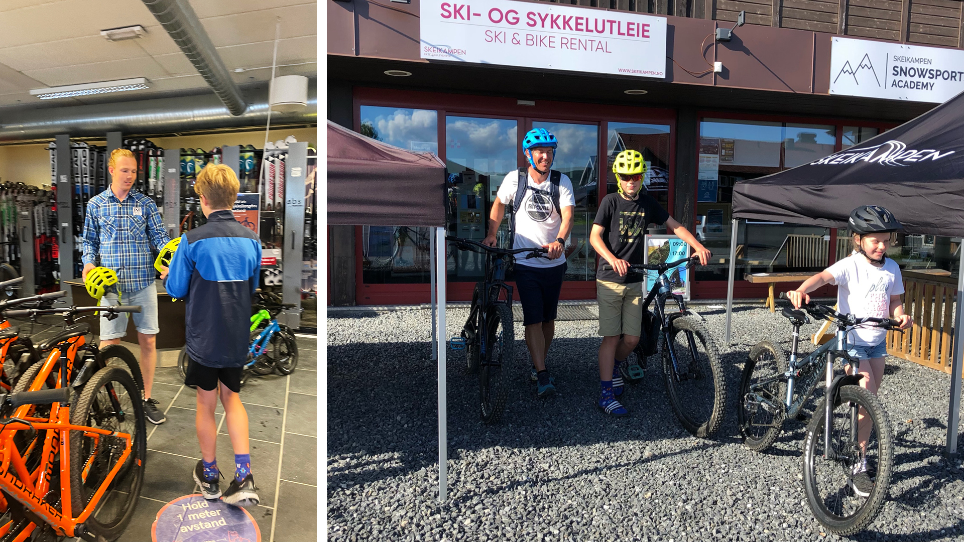 Vi kjørte opp lørdag ettermiddag og gikk rett til Skeikampen ski og sykkel og leide fulldempede terrengsykler til alle fire. På sykkelutleien fikk vi veldig god service, gode tips til sykkelruter og et kart over området. Les mer om sykkelutleie her.