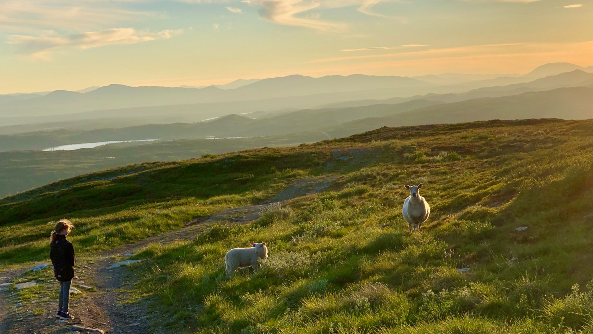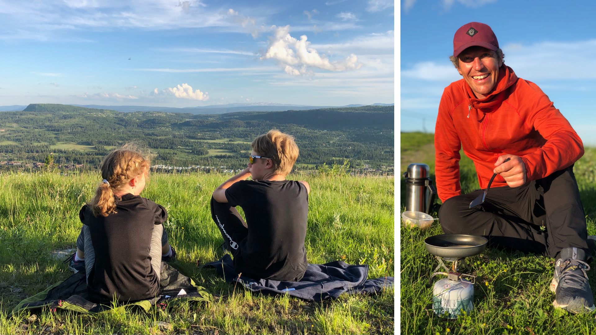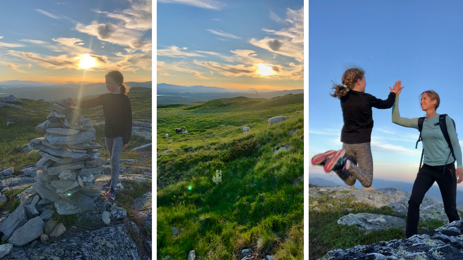 For å benytte oss av den lyse og varme sommerkvelden gikk vi en kveldstur opp på fjellet. Vi fant et hyggelig sted halvveis til toppen der vi tok en pause, stekte lapper på primus og nøt utsikten og stillheten. Vi fortsatte helt opp til toppen og møtte noen beitende sauer på vei opp. På toppen var det fantastisk utsikt i vakker kveldssol. Skeikampen er virkelig like flott om sommeren som om vinteren.