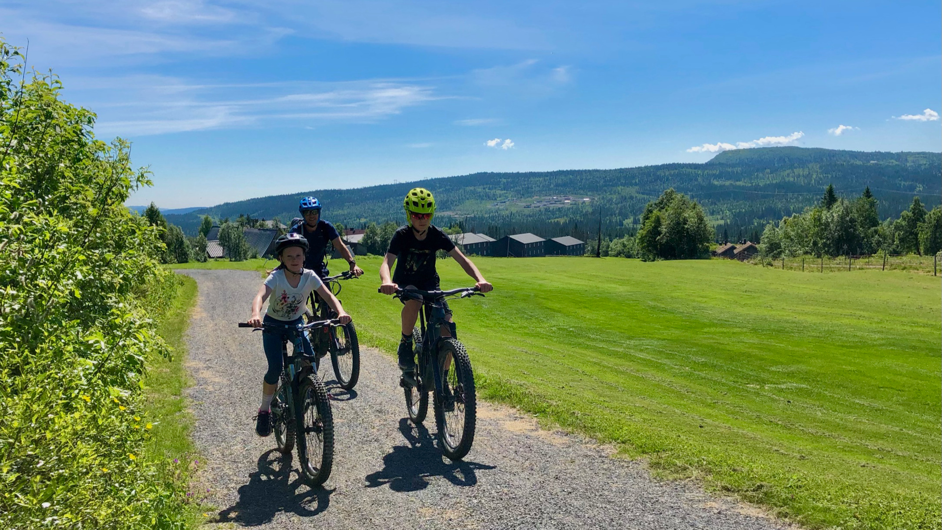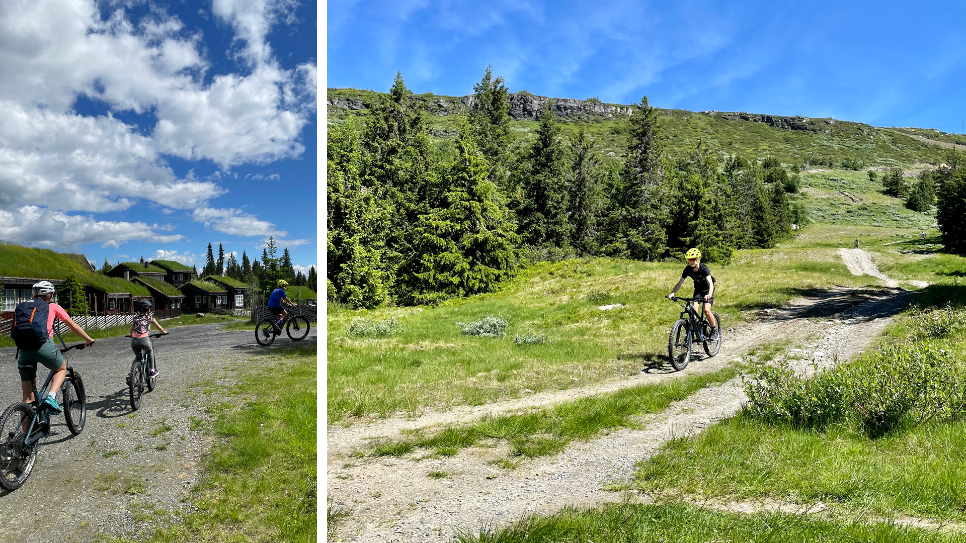 Etterpå testet vi Pumptrack og sykkel-hinderløypen nederst i skibakken for å bli litt kjent med syklene. På kvelden syklet vi voksne til Austlid fjellstue og forbi Veslesetervannet. Det var en hyggelig tur, men hadde nok vært litt lang for barna.