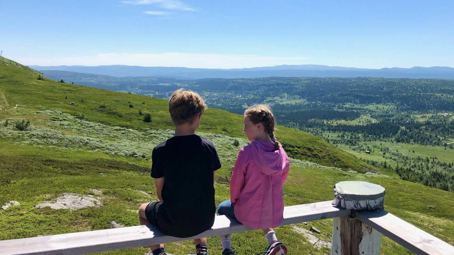 Mandag leide vi voksne fulldempede el-sykler for å komme oss litt lenger opp på fjellet. For at barna skulle orke å sykle opp de bratte bakkene fikk vi med «Shotgun Tow rope», som var et elastisk tau som kunne kobles fra voksensykkel til barnesykkel ved behov. Vi syklet «Åttern» bortover forbi Galtenheisen, svingte til høyre og syklet oppover mot toppen av fjellet. Det elastiske tauet gikk raskt å feste og fjerne og det var overraskende enkelt for oss voksne å trekke barna opp bakkene. På vei ned tok vi en drikkepause og nøt den flotte utsikten på terrassen til restaurant Galten. Hele veien ned fra fjellet var det godt tilrettelagt terrengsykkel-sti med morsomme broer og svinger.