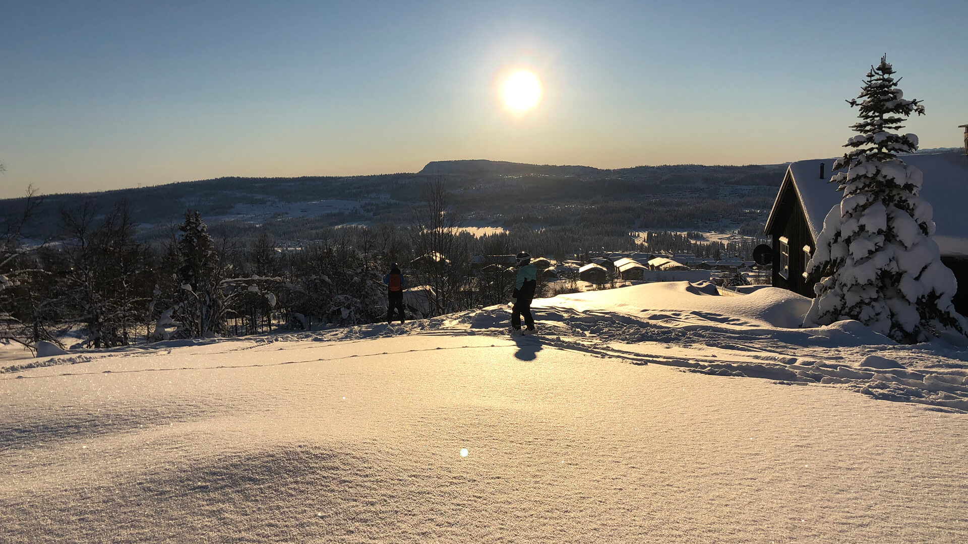 Alle leiligheter på Høyfjellstunet har en egen skibod i underetasjen, der det er praktisk å oppbevare ski, sko, akebrett med mer. I samme etasje er det også et preppe-rom der vi smurte skiene før vi skulle ut på langrenn. Skeikampen virker å ha uendelig med langrennsmuligheter. Siden vi ikke er kjent med langrennsløypene var vi usikre på hvilken løype som passer for barn som ikke vil gå så langt. Vi endte opp med å gå deler av Austlidrunden som var lett kupert med gode muligheter for både klassisk og skøyting. Løypene var nypreparerte og gikk gjennom flotte naturomgivelser.