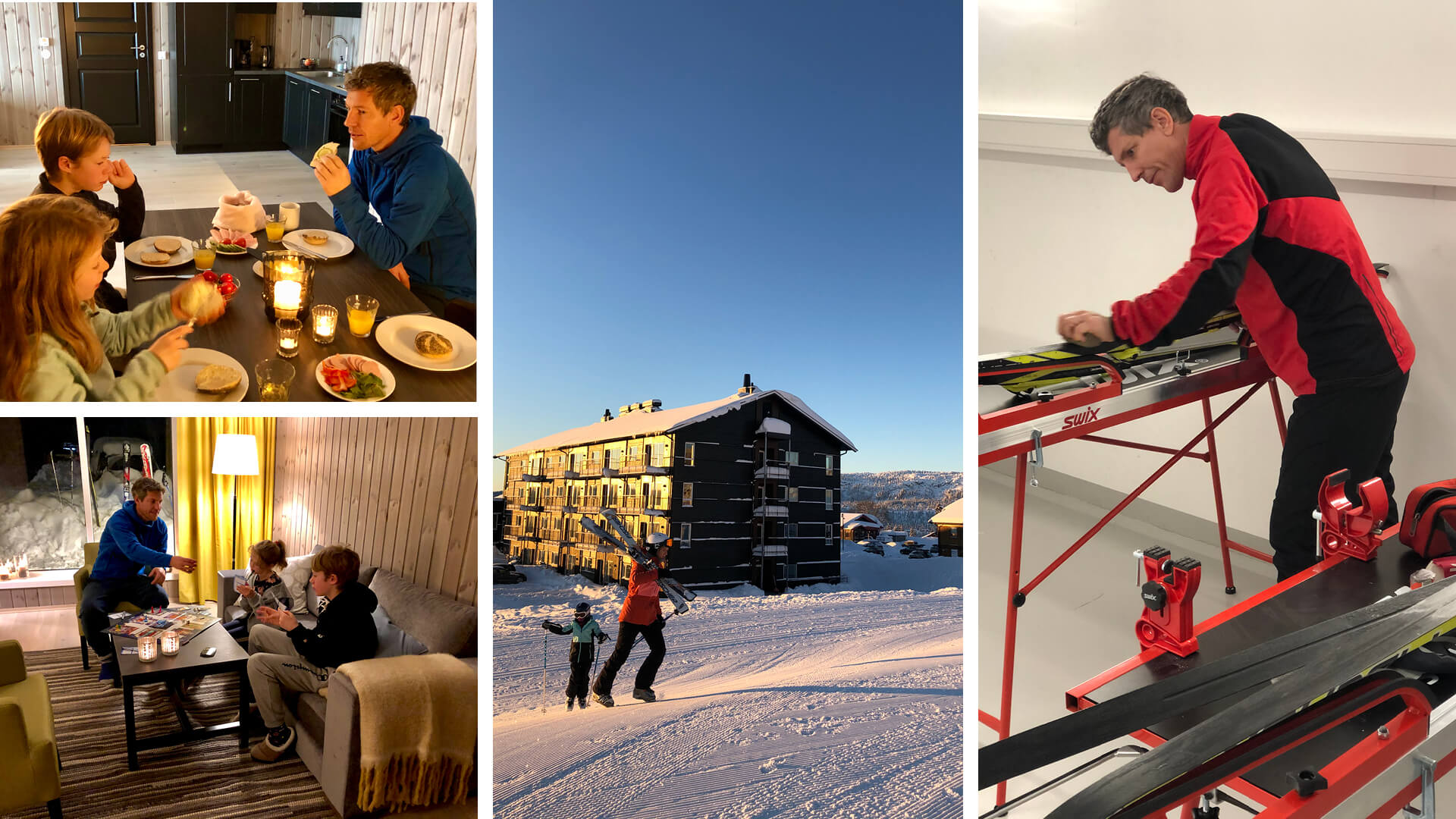 Også denne gangen var det masse nysnø og fine muligheter for skogs- og bakkekjøring i skianlegget. Skeikampen har fine og varierte bakker for både store og små. Etter noen timer i bakken var det deilig å kunne skli rett ned til leiligheten for å ta en matpause.