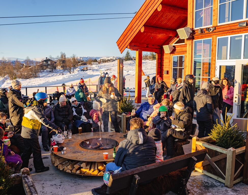 Barn er velkomne med foreldre mens bakken er åpen, og vi har egen barnemeny, i tillegg til at vi selger pølsepakker som kan grilles på bålpannen ute. Og smorespakker, med kjeks, sjokolade og marsmallows.